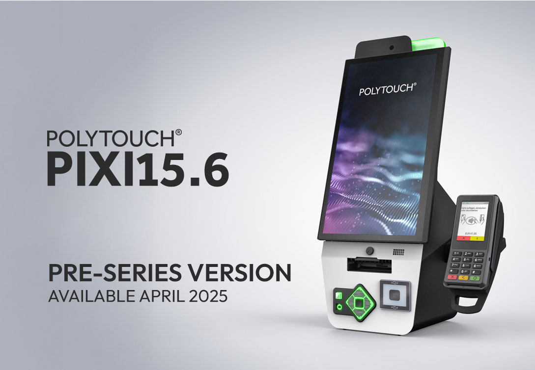 Der POLYTOUCH® PIXI15.6 setzt neue Maßstäbe in der Welt der Selbstbedienungstechnologie. Mit seiner ultrakompakten Größe, die kaum größer als ein DIN-A4-Blatt ist, fügt sich dieser Kiosk mühelos in jeden Raum ein. Dank seiner vielseitigen Montagemöglichkeiten als Wallmount oder Deskmount passt er sich perfekt Ihren individuellen Anforderungen an.
